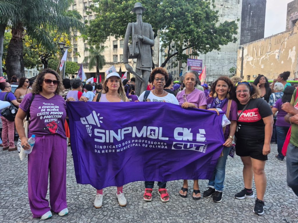 As professoras da rede municipal de Olinda também estão nesse enfrentamento. Somos maioria na educação e sabemos que, mesmo quando ocupamos espaços de liderança, não estamos livres da violência de gênero. Por isso, é fundamental que as mulheres se reconheçam também nesse lugar de luta coletiva.